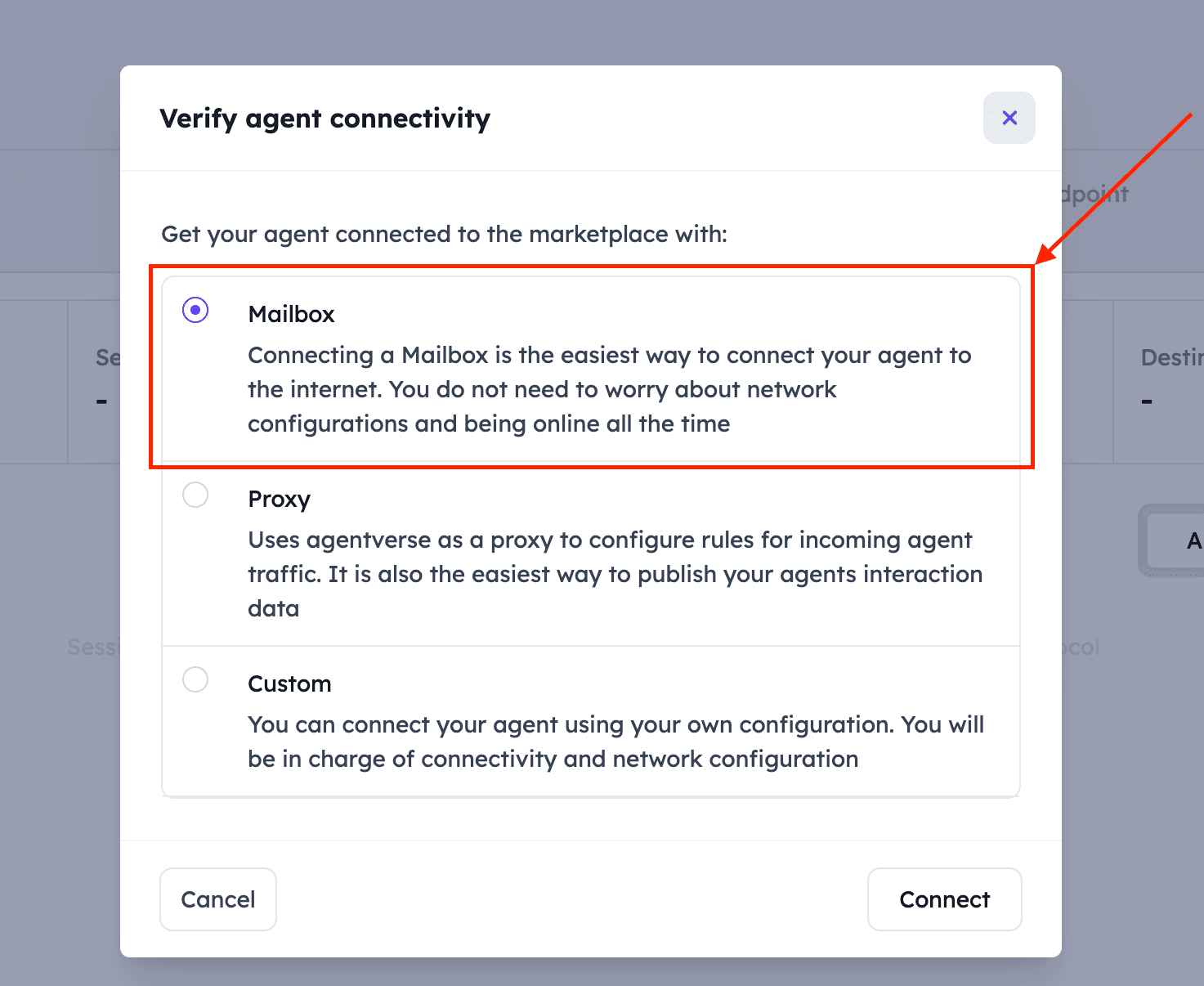the Mailbox feature on Agentverse. A Mailbox is a