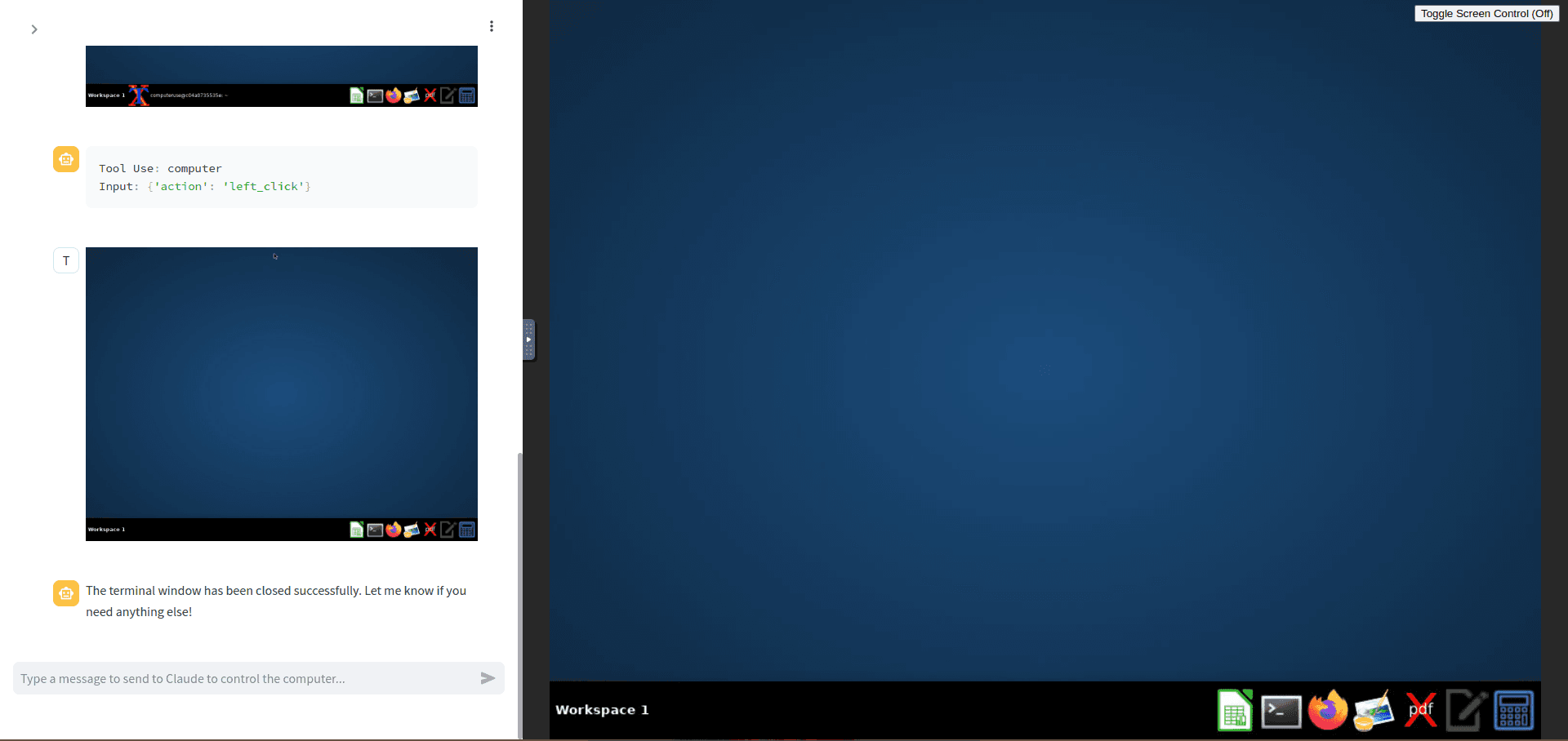 "Type a message to send to Claude to control the computer..."